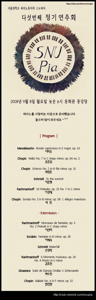 제5회 SNUPia 정기연주회(2008/09/08) > 정기연주회